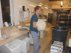 ![]() Les pains sont déposés dans les chariots pour qu'ils refroidissent. |